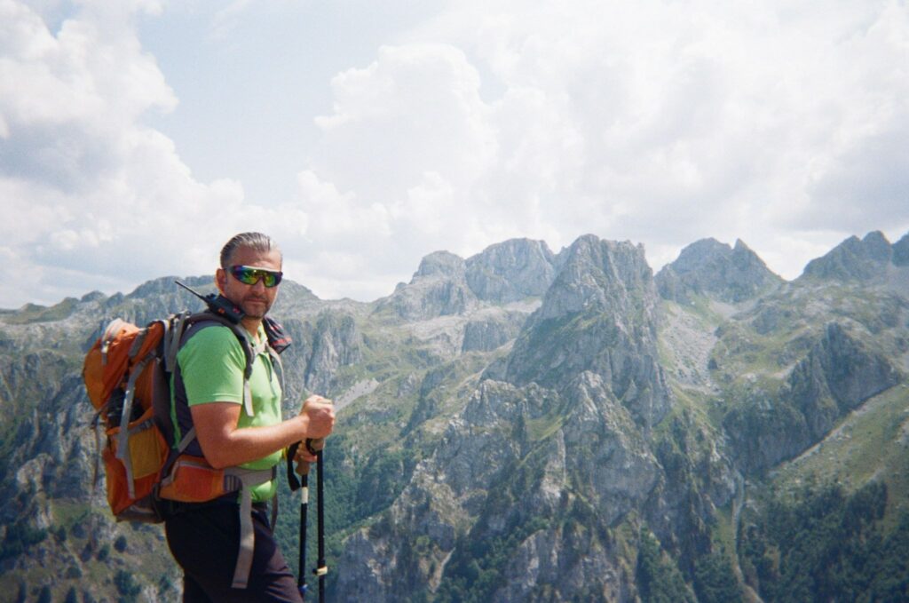 Astrit ist Guide auf dem Peaks of the Balkans Trail, Polyglott und kommt aus einer kulturell vielfältigen Familie mit Wurzeln im Kosovo, in Polen und mit deutschem Hintergrund. Er hat früher in den Niederlanden in der Landwirtschaft gearbeitet und liebt Videospiele. Heute führt er Gäste durch die Berge des Balkans.